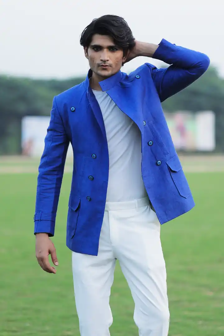 A contemporary take on timeless sophistication, the Overcoat is tailored from premium imported linen in a deep blue hue. Designed with a high neck and statement pockets, it strikes the perfect balance between structure and style, ideal for modern men who prefer effortless refinement with a hint of boldness.