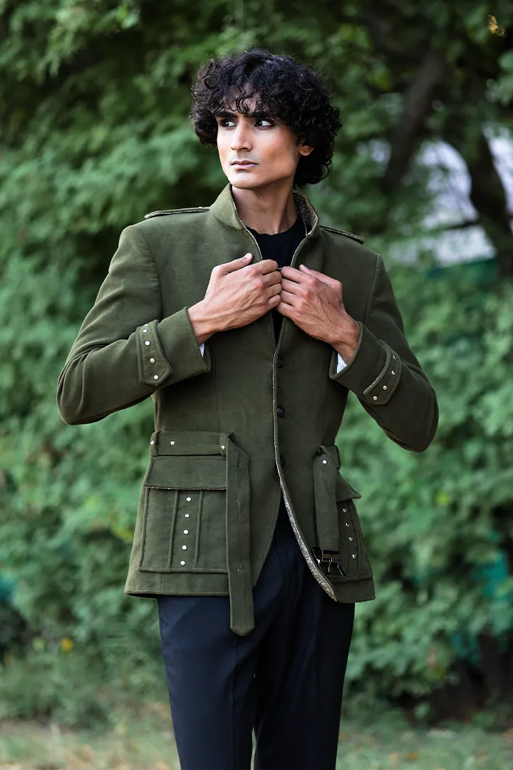 modern royalty. Crafted from imported moleskin cotton, this olive green piece balances structure